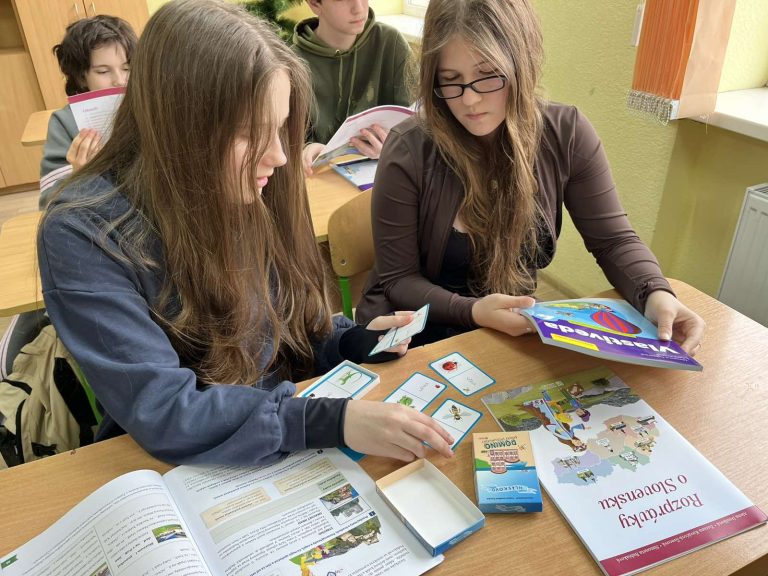 Висловлюємо щиру вдячність Закарпатському обласному культурно-просвітньому товариству словацьких жінок «Довіра», Університету Матея Бела в Банській Бистриці за подаровані книги та навчальні ігри. Наші уроки словацької мови стануть ще цікавішими та різноманітнішими. Діти з радістю навчатимуться і пізнаватимуть нову мову через гру.